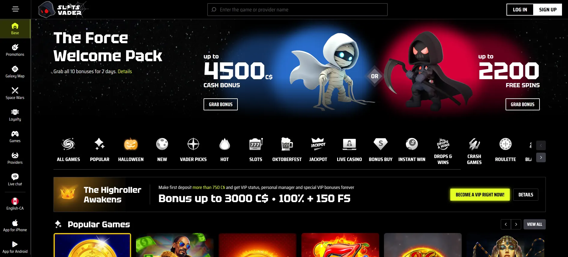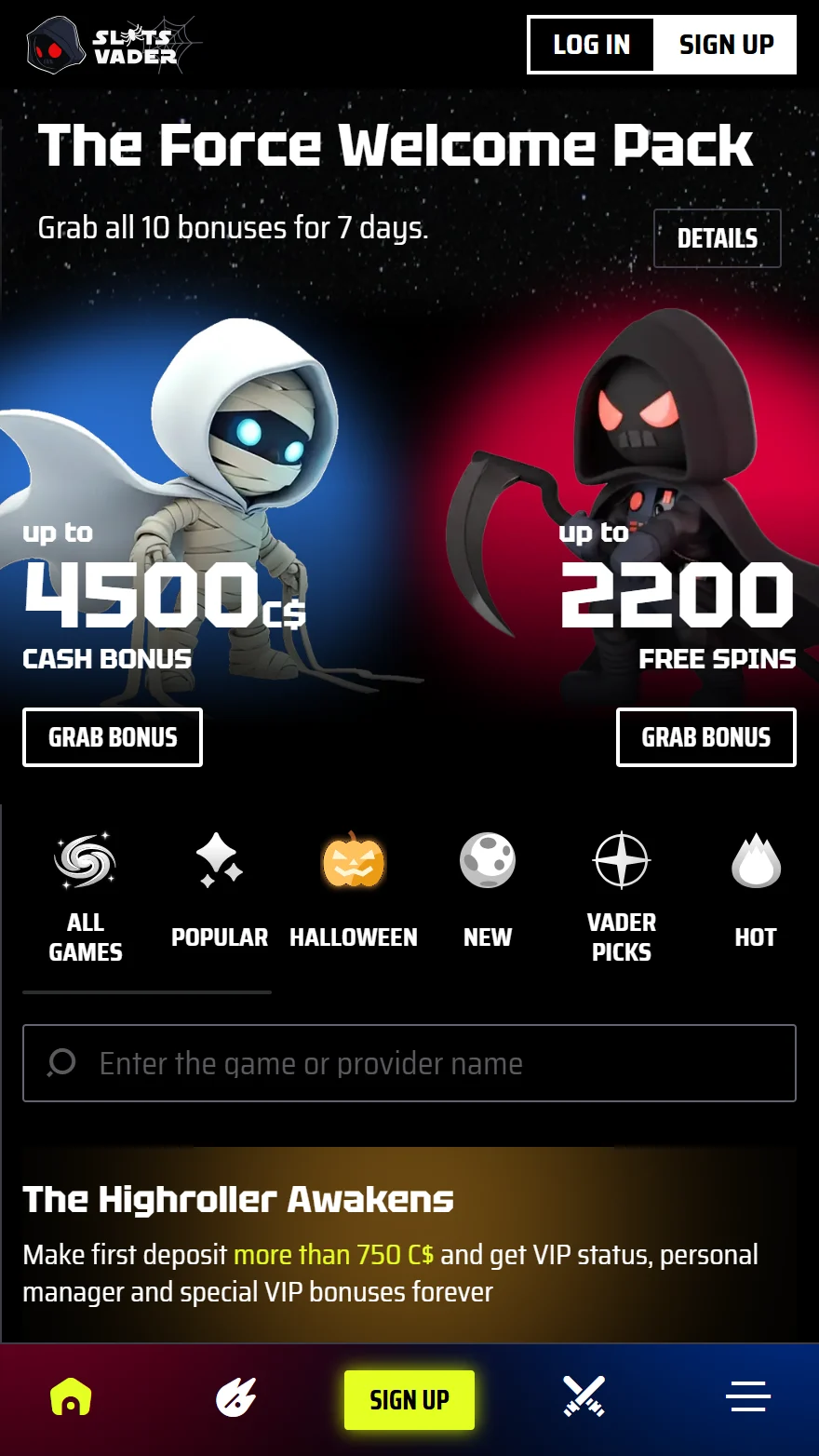 SlotsVader Welcome Bonus